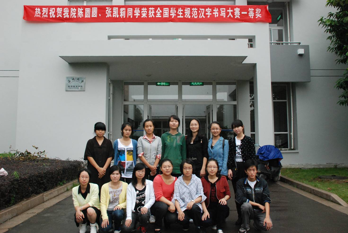 书法工作坊积极不断强化书法创作训练,精心组织书法大赛活动,成果丰硕,特色鲜明,在全省乃至全国高校产生了积极的影响。至2012年底,学生在全国、省、市书法(写字)大赛中获奖高达338人次,实现了多项突破,创造了多项纪录。尤其在教育部、国家语委、中央文明办联合举办的“全国学生规范汉字书写大赛”中,我院学生获奖成绩连续三年居全国高校榜首。我院2009--2011年连续三年荣获浙江省大中小学生规范汉字书写大赛“优秀组织奖”(全省仅太阳集团tyc234cc获此殊荣)。教育部门户网站、中国教育电视台、浙江教育在线、温州都市报、淮北日报等媒体曾报道刊登我校学生规范汉字书写大赛获奖消息、感言和作品。在2010年第二届全国学生规范汉字书写大赛特等奖决赛暨颁奖晚会上,教育部副部长为特等奖提名奖张凯莉颁奖,国家语委副主任分别和陈圆圆、张凯莉合影。