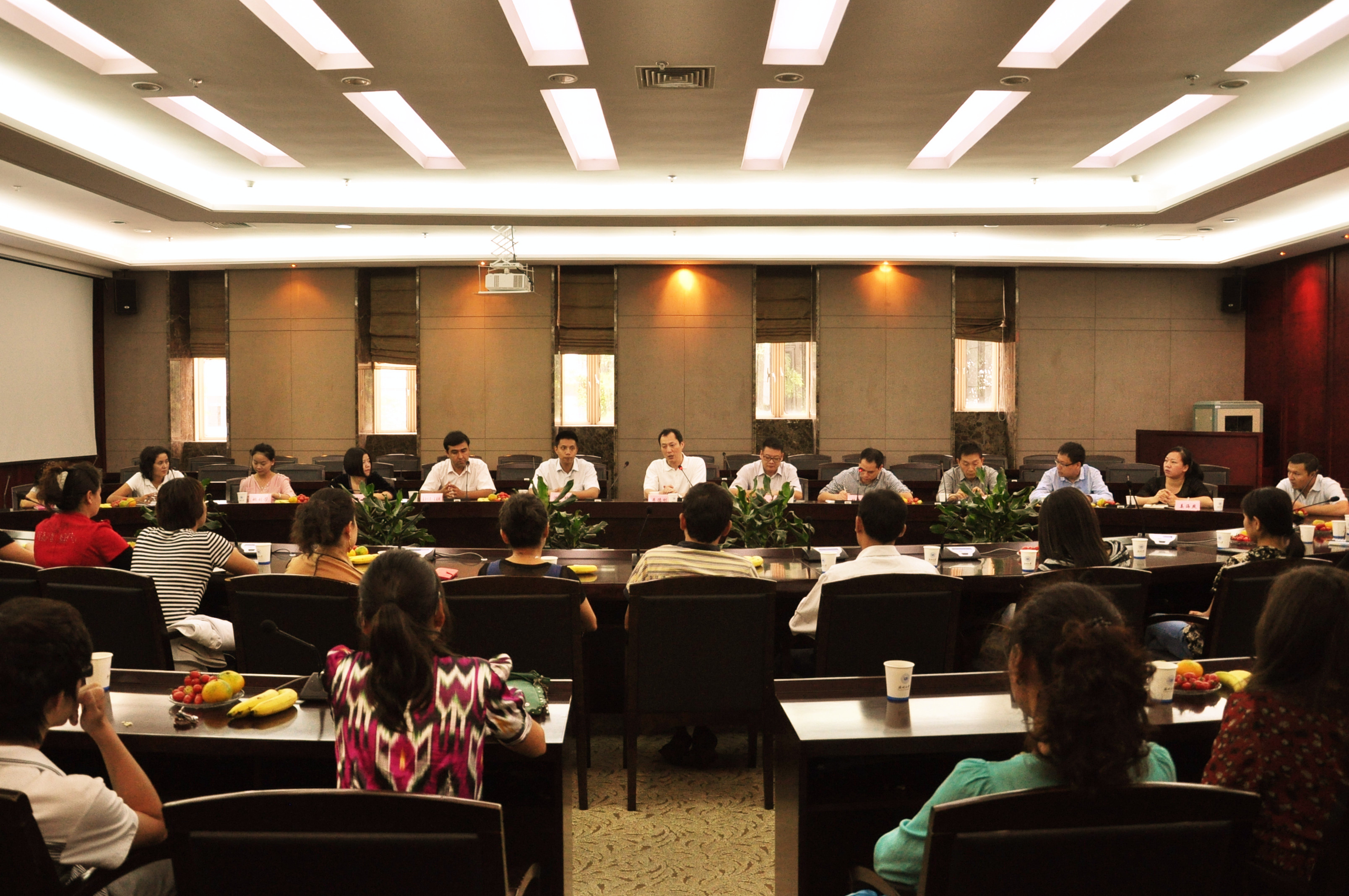 10月14日下午,温州团市委副书记沈醒、副书记麦合木提·麦麦提、学少部副部长葛红敏和市学联驻会主席姚刘芳等领导莅临我校,就我校新疆籍学生工作进行调研,并亲切看望了我院新疆籍学生。