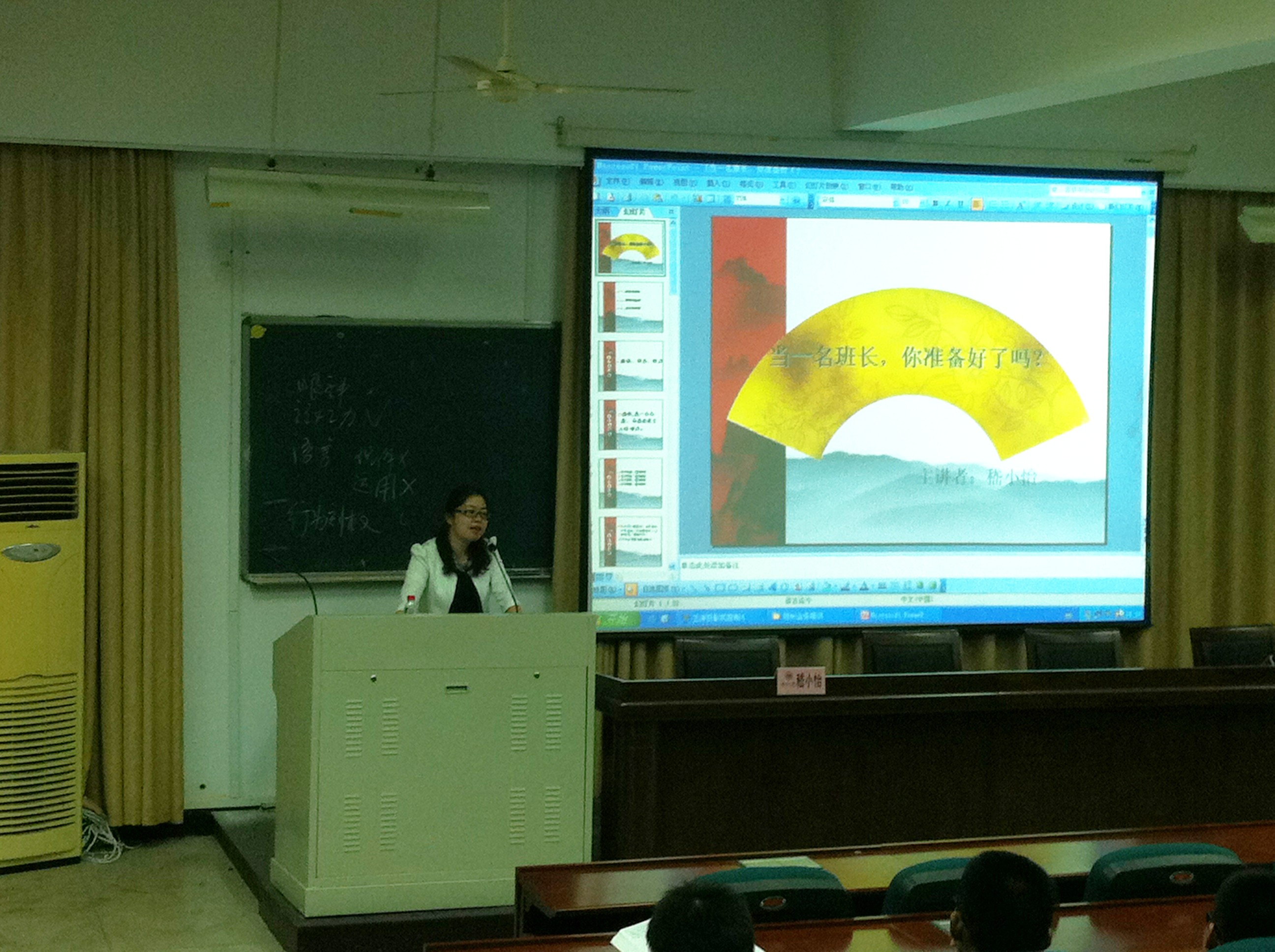 为加强班级凝聚力建设,提升班长的业务能力和素养,我院学生会于2012年10月11日晚6:30,在北校3号楼101教室,成功举办了班长业务学习会。本次讲座由嵇小怡副书记主讲。