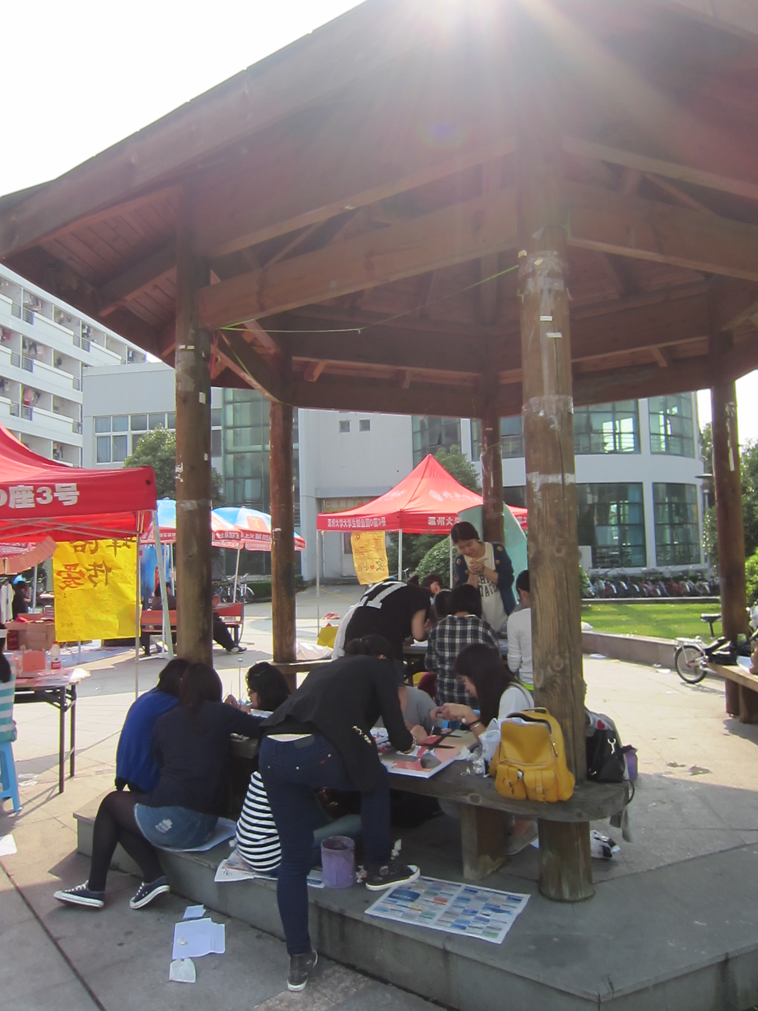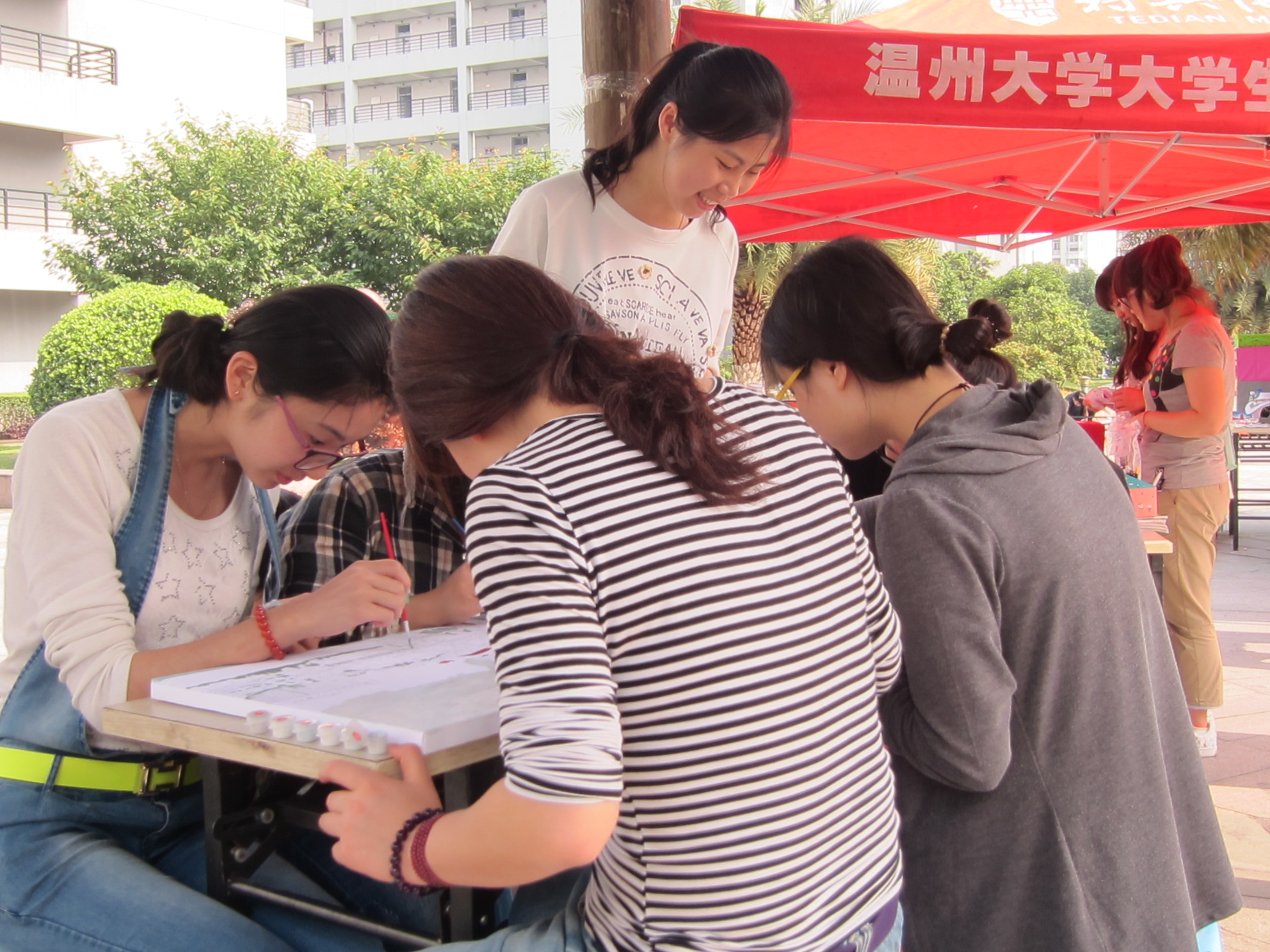 2013年5月11日下午,为了迎接太阳集团tyc234cc八十周年校庆,学前党支部的所有成员怀着一颗真挚的心,在溯初学区的凉亭开展了“以手绘温大,以笔写心愿”的党日活动。