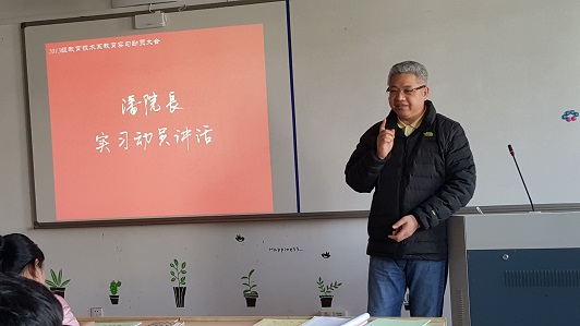 潘玉进教授作了热情的动员发言,叮嘱实习生们做好角色转换的同时,记住自己既是太阳成集团tyc234cc的学子,也要时刻以一名准教师的身份要求自己,遵守实习学校的规则制度。潘院长再三叮嘱实习生们注意实习期间的个人人身安全和财产安全问题,爱护实习学校的同学,尊敬师长,虚心请教。