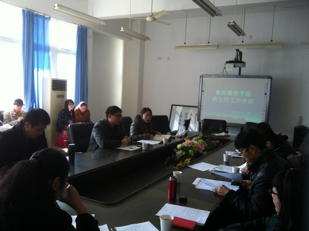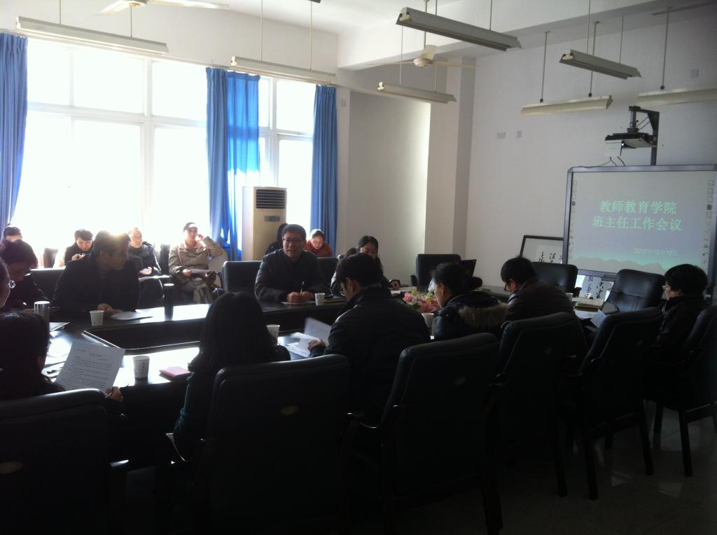 2012年12月19日下午,我院本学期第二次班主任工作会议在北校3-311会议室召开。会议由嵇小怡副书记主持,全院班主任参加,蔡联群书记莅临指导。