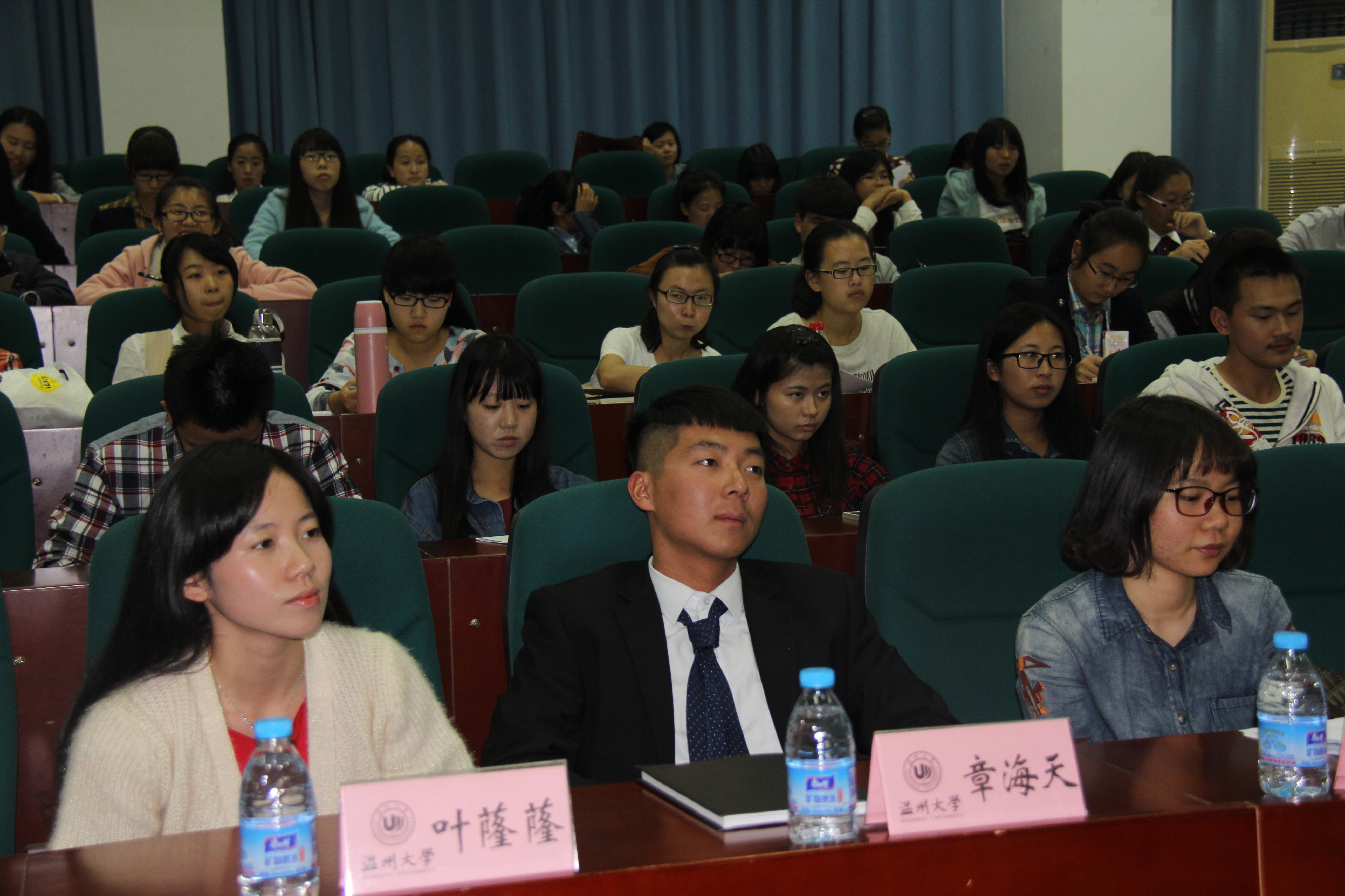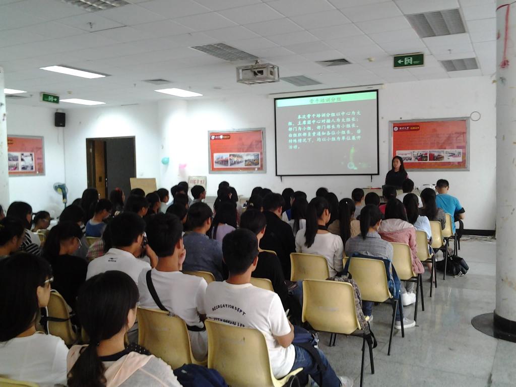 11月30日下午,在北3-101教室举行了太阳成集团tyc234cc团干培训艺系列讲座之“做好一名学生干部,也是一门艺术”。在主持人致开场词后,三位优秀的学长学姐为各位团干们带来了一场生动诙谐而令人深思的讲座。首先,叶蕯蕯学姐为大家播放了教院团委招新时的视频,并询问大家,成为一名团干两个月之久,你是否记住了团委下的四个中心,是否记住了团委大家庭中的各位成员。这一轻巧的问题却引起了同学们深深的反思,也懂得了“把握细化,用心做事,乐在其中”的内涵。紧接着,章海天学长用生动的小故事以及流畅的英语,在幽默的氛围中告诉我们“能力,是由信心、耐心、责任心和细心构成的”。最后,徐佳学姐则娓娓道来,告诉我们“要学会取舍,学会承担,学会合作,学会反思”。