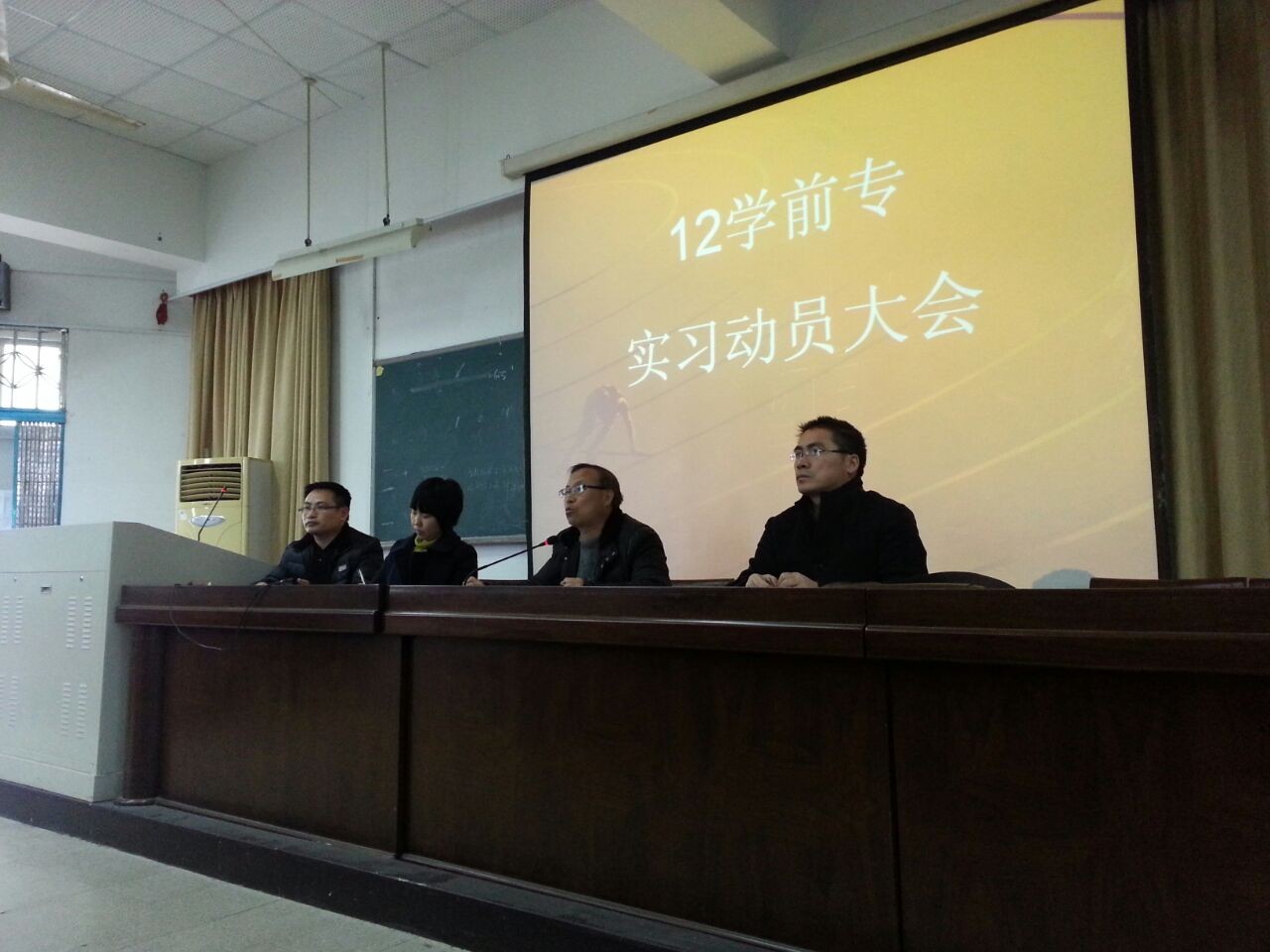 动员大会在在热烈的气氛开始了,大家都很期待本次实习。动员大会中,副院长彭小明老师首先讲话,他为大家提出了三方面希望的希望,介绍了实习的意义;希望同学们能在实习内容是,掌握“学会教学、学会保育、学会教科研”的本领,最后,他还特别强调了实习安全和纪律问题。章圆圆对请假制度、教师仪表、礼貌、遵守规章制度等问题进行了规定。系主任曾国老师结合以往实习过程中出现的案例,进行了生动、幽默的说明,请勉励大家实习要做好吃苦的准备。教务科胡孙贵老师对此次会议进行了总结,并讲解了实习网络平台的运用、与同学们核对了实习所需的材料。