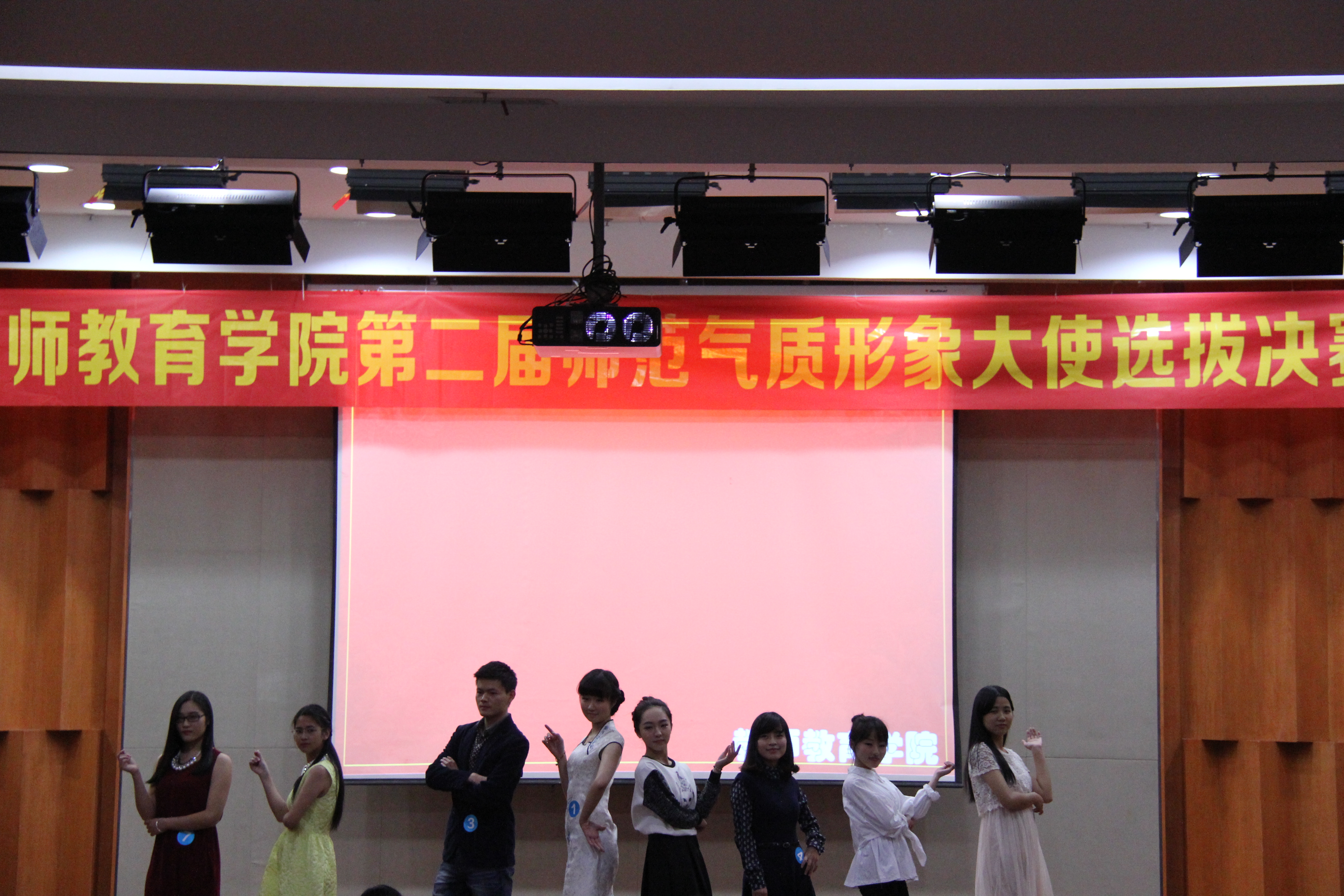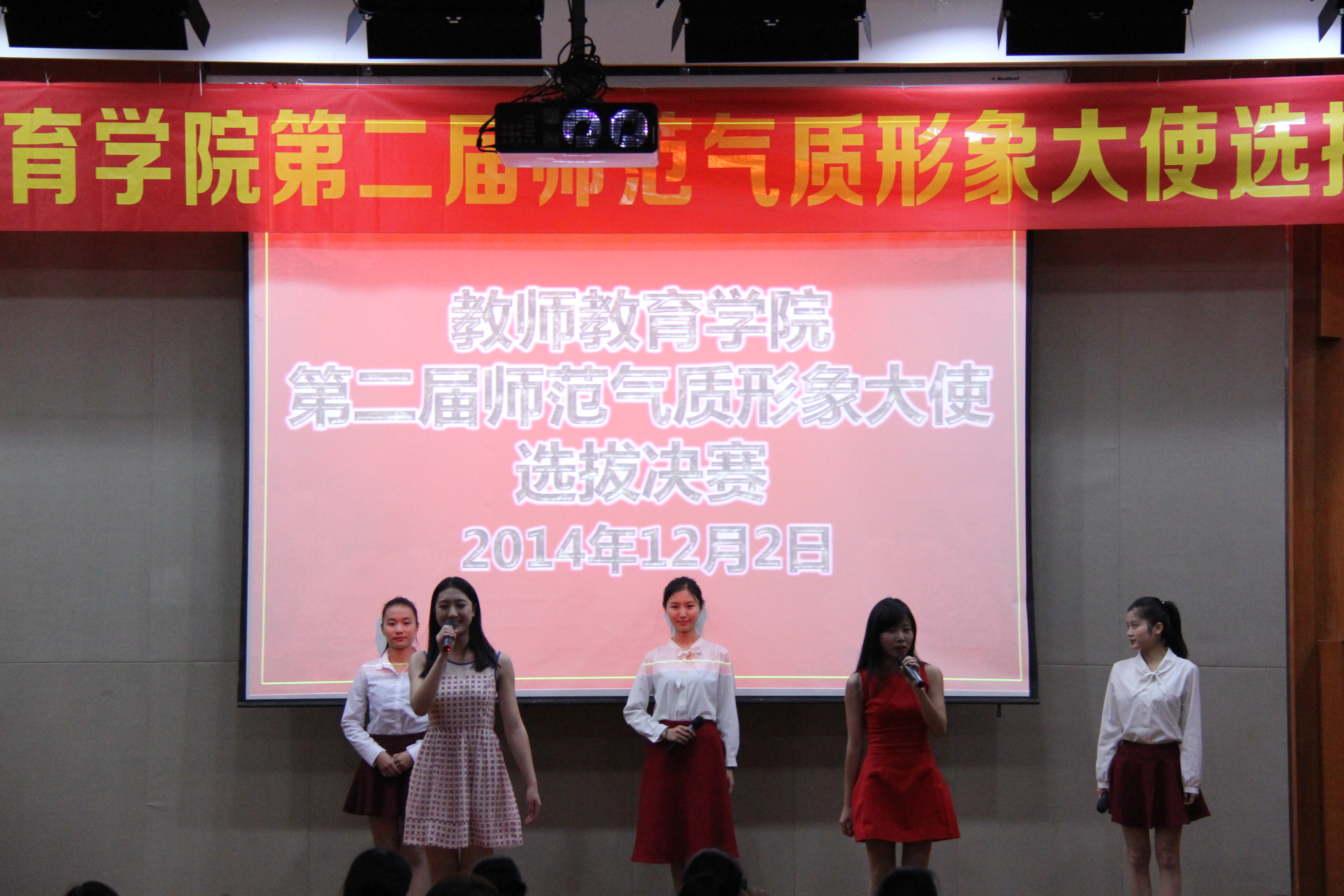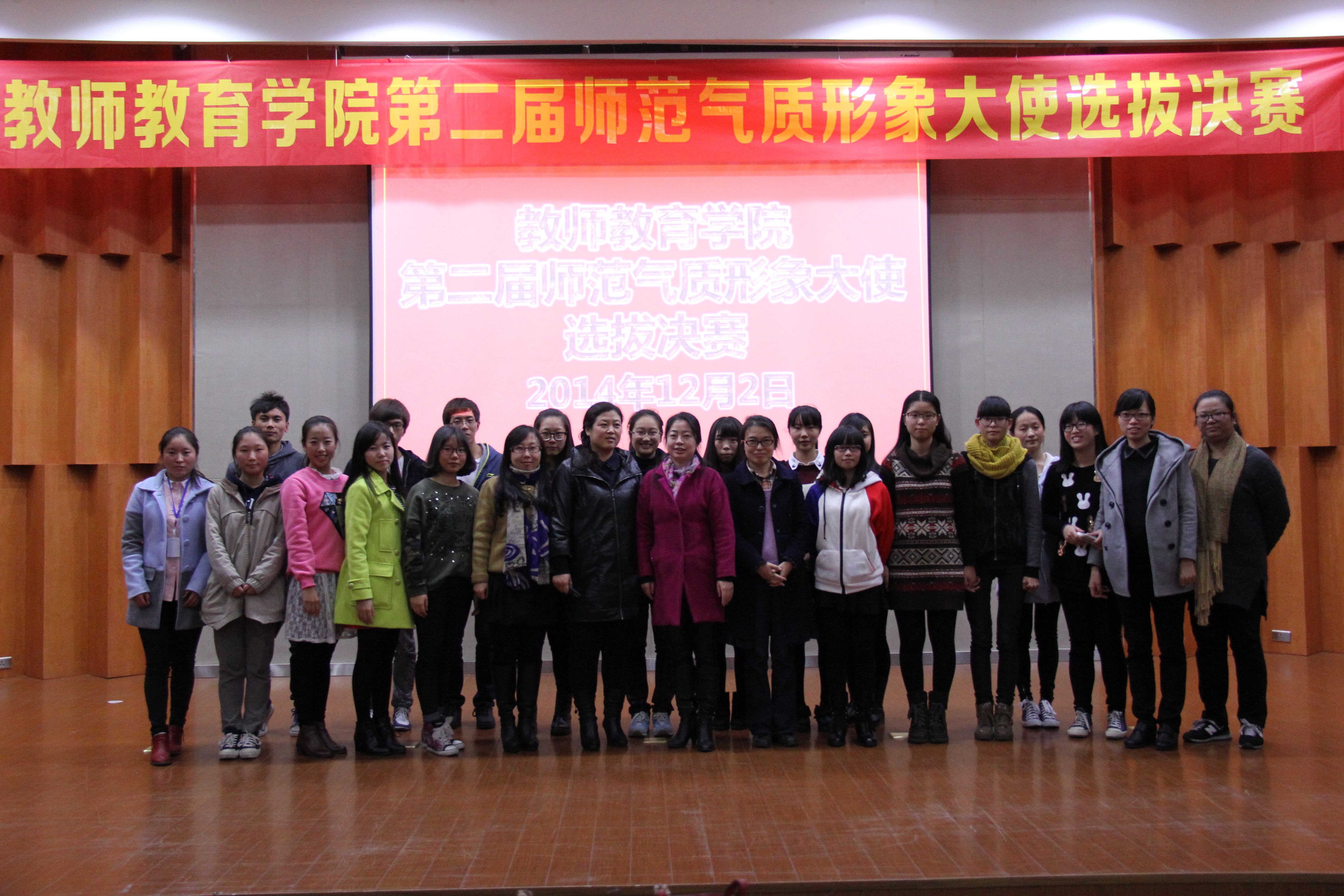 2014年12月2日星期二晚上,太阳成集团tyc234cc第二届师范气质形象大使选拔决赛在南校雁山厅举行。到场的嘉宾有学院党总支副书记嵇小怡老师,教技系主任张新立老师,小教系书记刘海霞老师,心理系卢佳老师,学前系杨利霞老师,以及来自教育学院各个班的大众评审和观赛学生近350人。