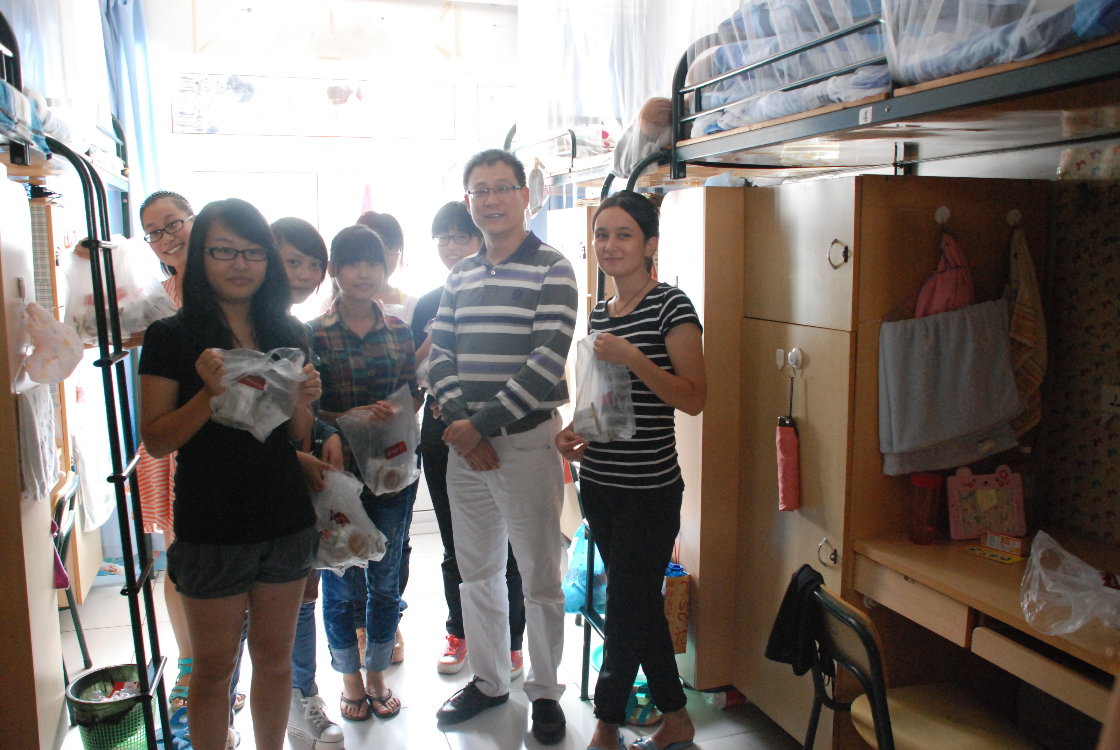 2012年9月28日,中秋节前夕,在这个特殊的日子,太阳成集团tyc234cc和校学生处为同学们精心准备了美味可口的月饼,这是我院惠生工程的又一个重要举措。中午12点50分,我院领导、溯初学区领导和各班班主任们纷纷来到同学们寝室,为大家带去节日的祝福。