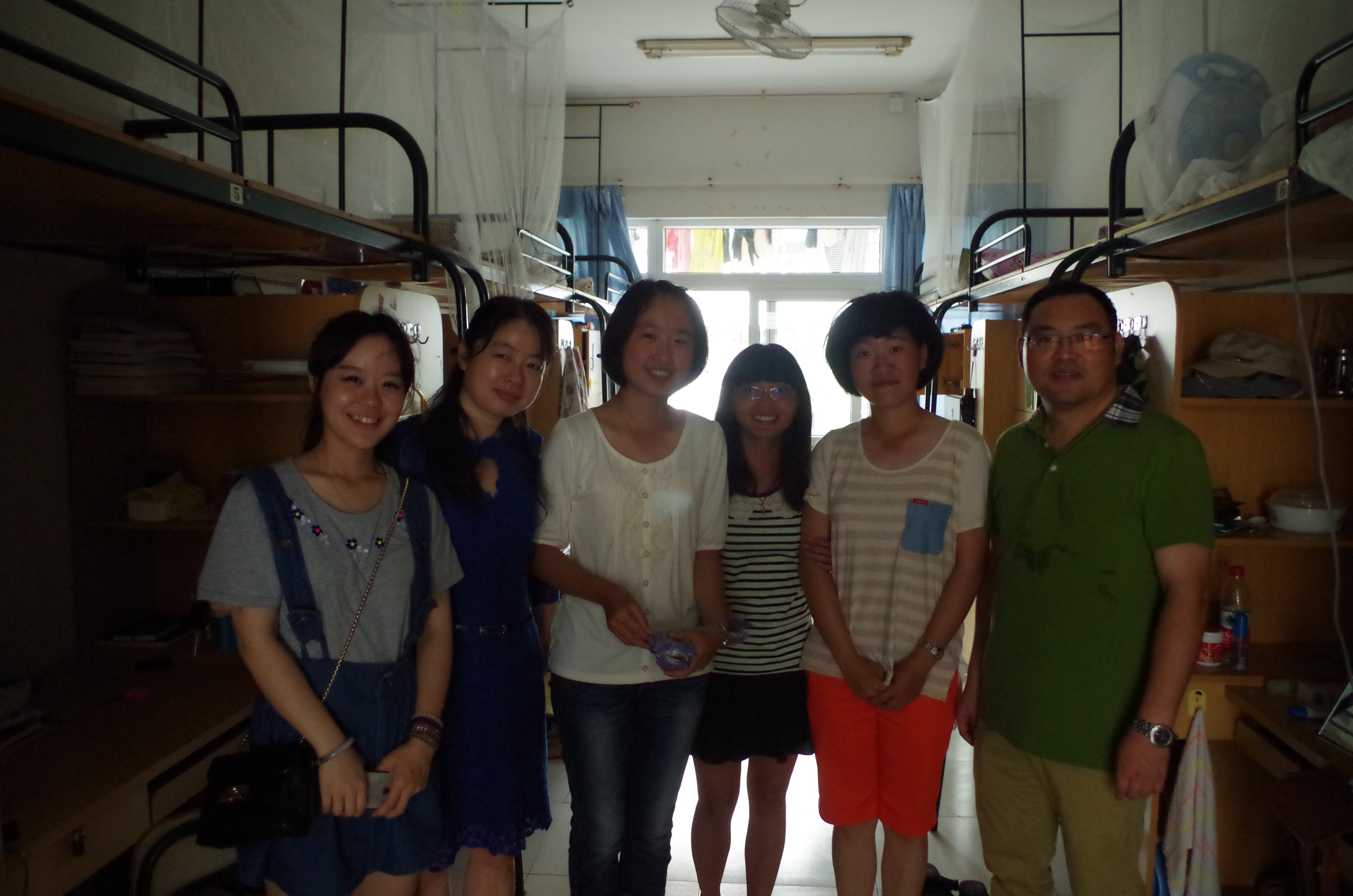 郑信军院长一行人发的是应用心理学专业的同学,同学们住的都比较分散,一路上院长与随行的同学聊他们的生活学习情况,关切的问候我院的每一位学生。10应心葛旭妃同学收到月饼后,感慨到:“我们学院太有爱了,每每到节日,老师们都是亲自把祝福送到寝室,‘爱暖人心’!”