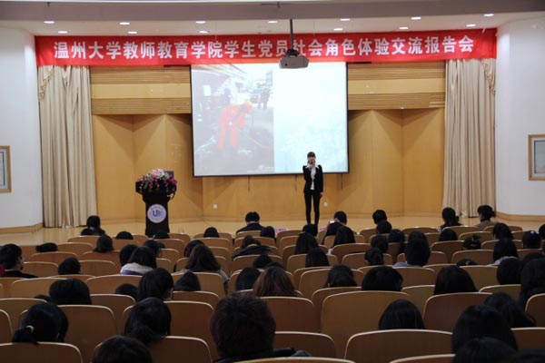 本次学生党员社会角色体验交流报告会是对全体党员和入党积极分子一次深刻的教育,也是一堂生动的党课。通过这次学习,同学们更清晰地认识到了自身的奋斗目标,也更坚定了感恩社会、回报社会的决心。(林琪妮)
