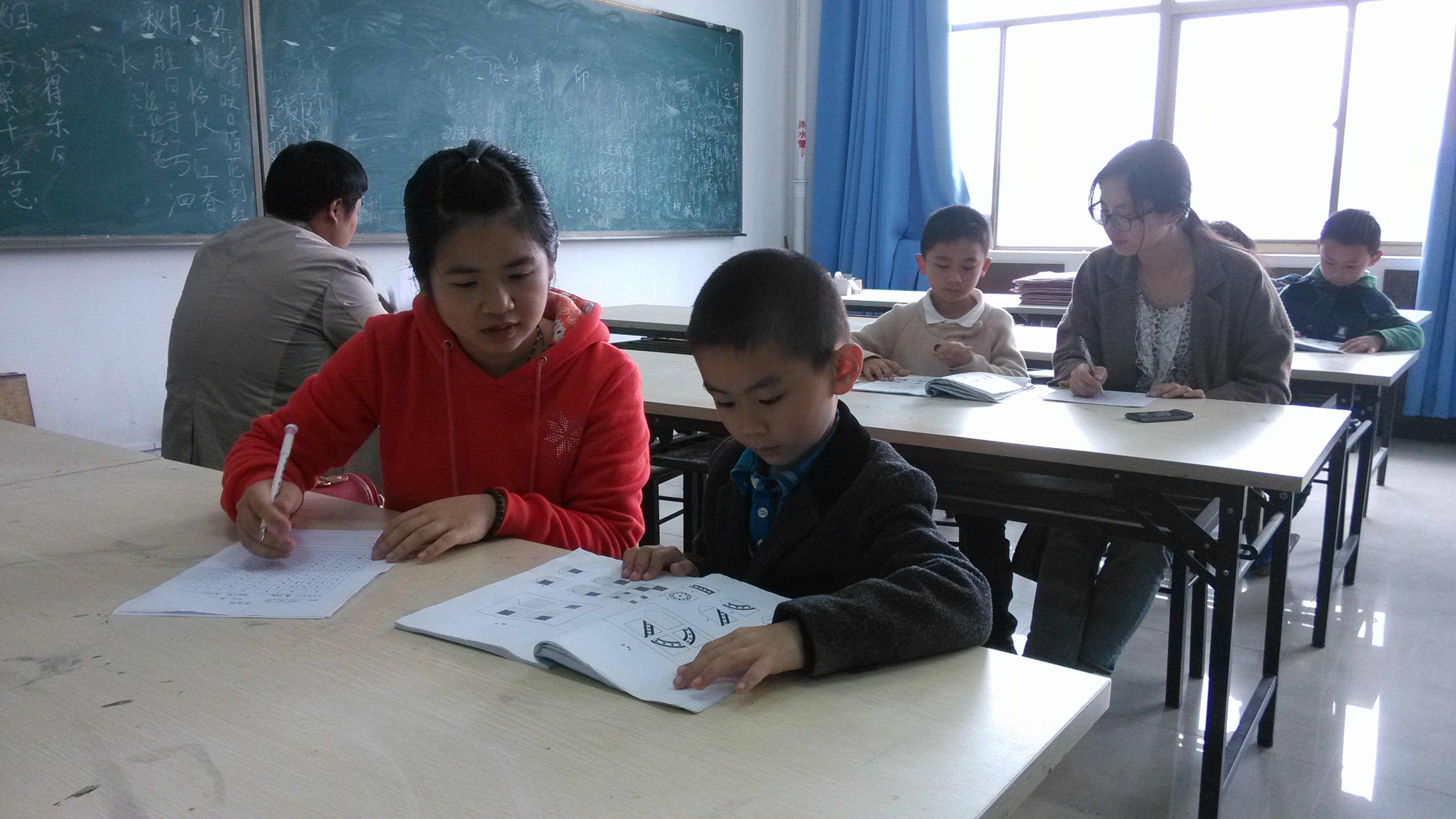本次心理测验活动仍运用瑞文测验联合型(CRT),对年满5周岁以上的孩子进行逻辑推理能力的测评,由于参与人员较多,活动分上、下午两场。上午的活动对象为温州市实验小学一年级的27位学生,通过一对一的施测方式,心理健康测量工作坊的学生以生动清晰的指导语向小朋友们解释了瑞文测验的施测过程,小朋友们也认真地完成了整个测验。在施测过程中,家长们也积极与陈老师交流沟通,了解此次测验的目的,陈老师也根据小朋友的测验结果给予了的相应的建议。下午的活动对象主要是26位环卫工子女,采用团体施测方式,在给小朋友讲解了测验指导语之后,由小朋友自己填写答案,心理健康测量工作坊的学生在一旁观察记录每一位学生做题状态,以便测验结束后作综合评估建议。
