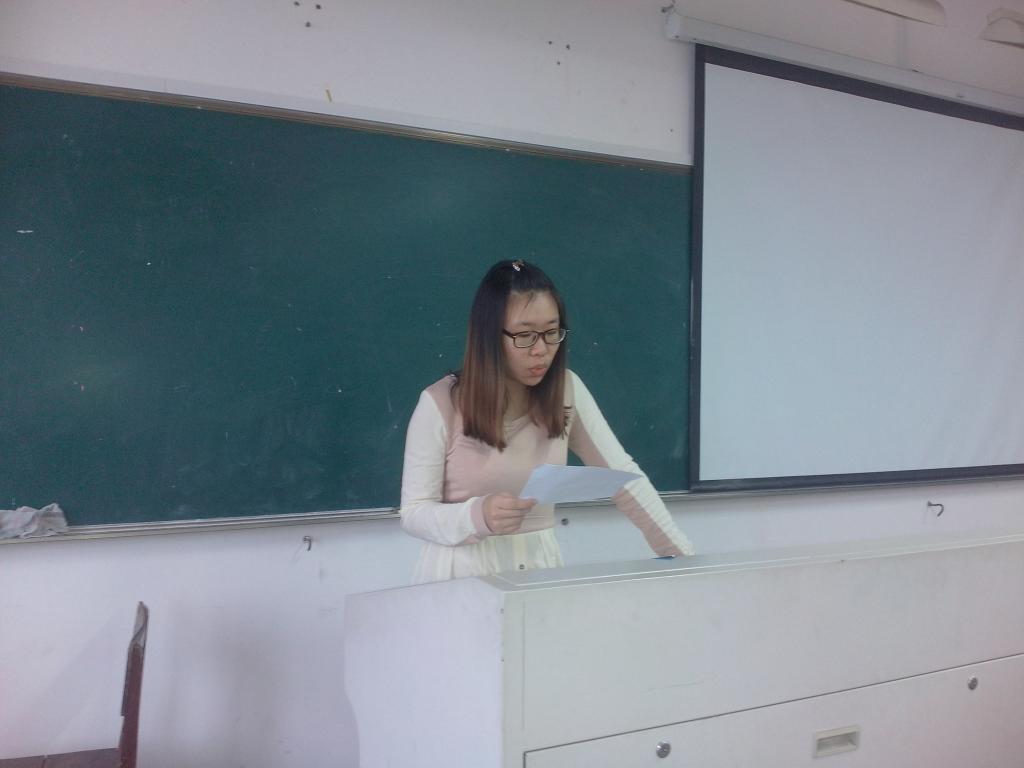 2013年5月9日,11小教中文班在北校3幢405教室举行了本学期的第九次班级读书会。此次读书会由廖瑶瑶同学倾情主讲。
