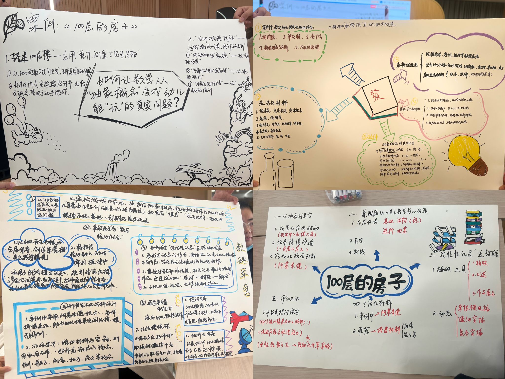 当天下午该园三位老师带来了各具特色的实践案例分享。张锦琼老师分享项目化案例《100层的房子》,以绘本为依托设计系列活动,引导幼儿在探索绘本情节的过程中建构数学经验;章温静老师的《探秘“麻将馆”里的数学智慧》,挖掘生活化材料中的数学元素,展现了传统游戏转化为数学学习资源的创新思路;张柔怡老师的《数趣军营》,以军事主题为切入点设计趣味数学游戏,让幼儿在模拟军营活动中提升数学能力。一个个新颖的案例,为学员老师们打开了数学教学的新思路。