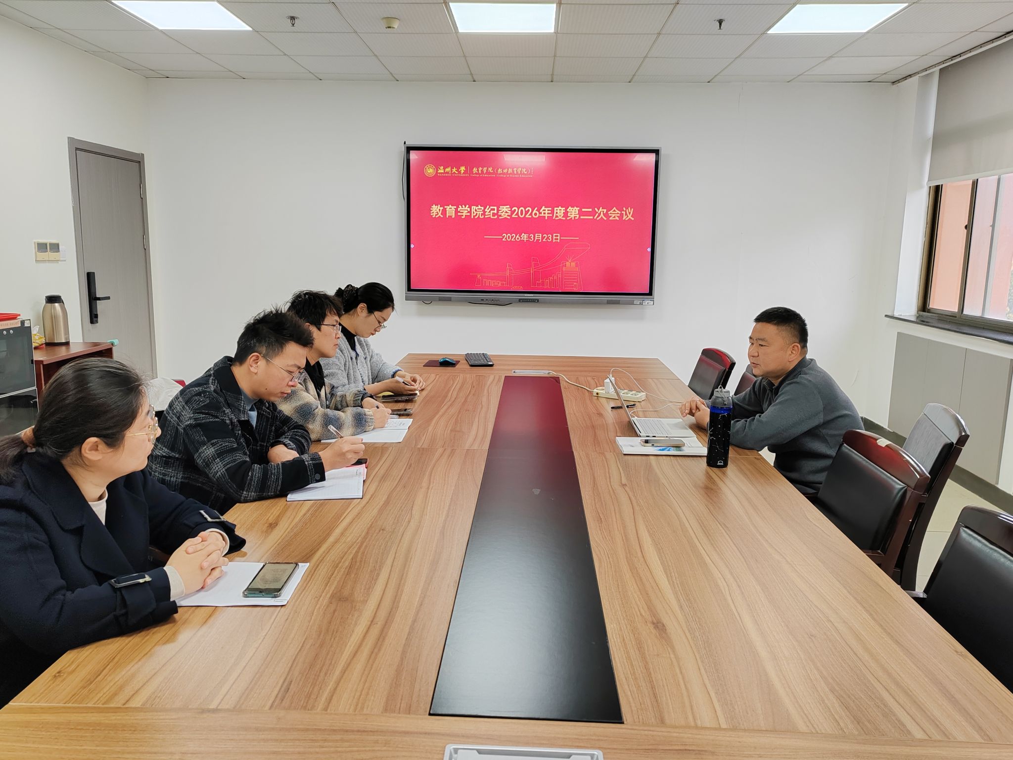 2026年3月23日上午,太阳集团tyc234cc教育学院纪委2026年度第二次会议在北校8-408会议室顺利召开。会议由学院纪委书记章志图主持,学院纪委全体委员出席会议。