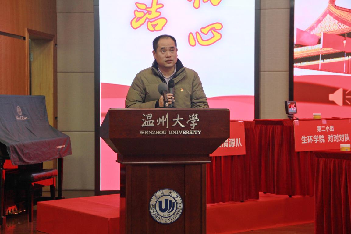 杨立淮书记作总结讲话,他强调,举办廉洁文化知识竞赛,是贯彻党的十九大精神和十九届四中全会精神,巩固“不忘初心、牢记使命”的重要成果,加强同志们的自觉性,推进校园廉政文化的建设,营造积极向上的校园廉政文化氛围。杨立淮书记向筹备本次比赛辛勤付出的同学表示感谢,向参加活动的同学表示热烈欢迎,感谢各位参赛选手的积极参与,感谢教育学院的精心组织,感谢各个学院的密切配合。他希望,廉洁文化的传播不仅要在竞赛,更要在竞赛之外。作为新时代的大学生,必须系牢人生第一颗扣子,拧紧世界观、人生观这个总开关。不断地学习廉洁文化,接受廉洁教育,提升廉政素养。廉洁不是简简单单的口号,是一种素质、一种境界、一种智慧。争做一名思想品质高尚、道德品质良好、文化知识丰富的大学生,以青春自我、奋斗自我,为社会建设添砖加瓦。杨立淮书记指出,廉洁宣传永远在路上。我们要继续以强烈的自我革命精神,以对党、对事业、对自己高度负责的态度,唱响主旋律,弘扬正能量,传播校园廉政文化。他表示,学校此次举行廉洁文化知识竞赛既是为了让学生了解何为廉洁,又是为了告诉我们,我们每个人都是廉洁的一份子,廉洁教育应该从大学生开始。