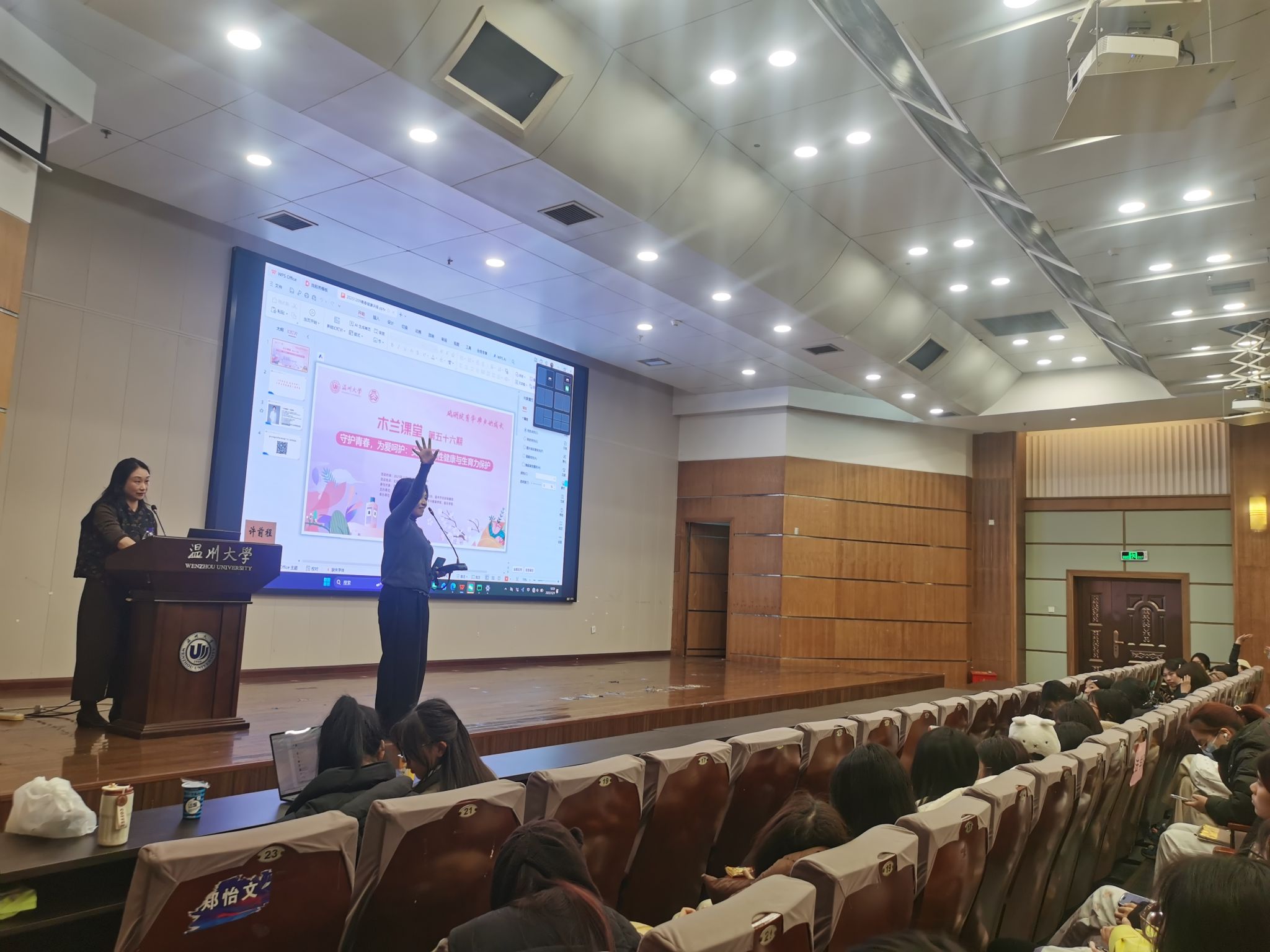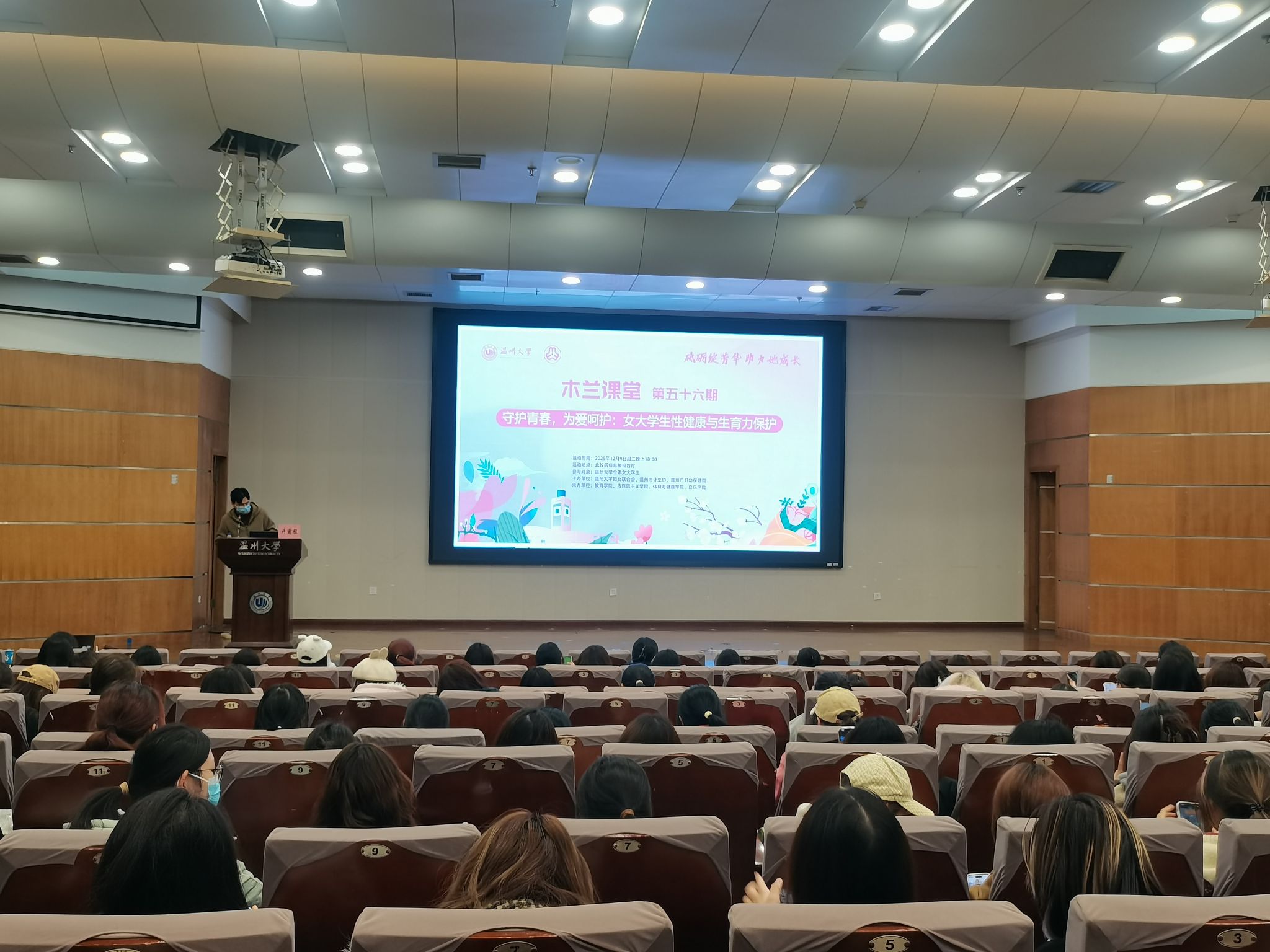 12月9日,太阳集团tyc234cc教育学院承办的第56期木兰课堂暨“花儿朵朵青春课”—“我们的青春不冒险:大学生性与生殖健康科普讲座”于北校信息楼报告厅顺利举办。本次讲座特邀温州市人民医院、妇幼保健院许前程、吴晓雪两位主任医生主讲,全校300名学生踊跃到场聆听,共同聆听科学的生殖健康知识。