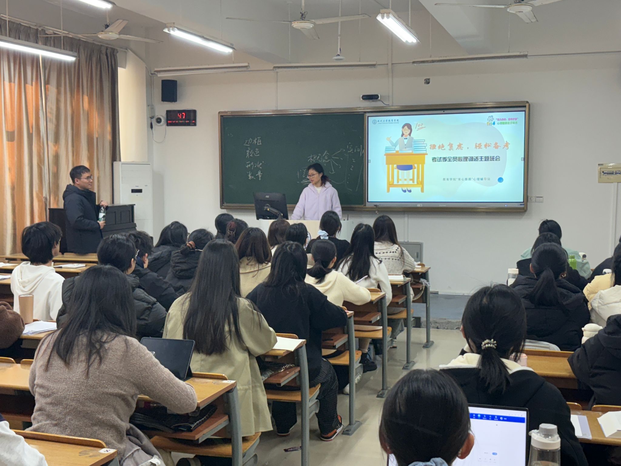 期末备考阶段临近,为有效帮助学生缓解学业压力、疏导焦虑情绪,引导大家以积极健康的心态投入复习备考,2025年12月,教育学院统筹部署,组织2023-2025级全体学生分班级开展“拒接焦虑,轻松备考”心理调适主题班会,为备考的学子们精准送上实用的心理“减压包”。